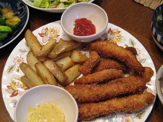 チキンフィンガー。アメリカのファミレスには必ずといっていいほどメニューにあります。 鶏のささみのフライです。ムネ肉も入ってたりするのかなー。ささみのイメージが強いけど。 高校時代、友達とよくTGIFというファミレスに行っていました。日本にもあります。 日本のサイト→ TGIF 青春時代?!の思い出の場所です。 久しぶりに食べたくなったので、作ってみることにしました。 ささみに塩・こしょう・ガーリックパウダーをしっかり振ります。 後は、小麦粉→卵→パン粉の潤につけて、油で揚げるだけです。 付け合せはやっぱりフライドポテトなんですね。 メークインのジャガイモを買ってきました。土をしっかり洗い落として、電子レンジで7-8割火を通します。親指くらいの太さに切って、揚げる(揚げ焼きでも)だけですね。 写真はまた今度~。 写真アップしまーす。 |
