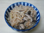 ⑤しっかり油がなじんだら、砂糖小さじ1くらい、ダシの素少々、しいたけを加えてもう一度なじませます。