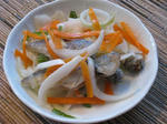本来は野菜は食べないものなのでしょうけど、この浸かった野菜が好きで我が家では野菜もアジも全て食べちゃいます。これからの時期、何度も登場しそうな気配です。